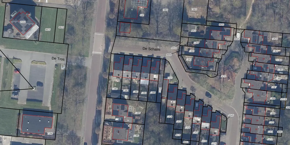 Het perceel waarop De Schalm 8 staat heeft een oppervlakte van 190 m². Dit is een middelgroot perceel. De perceeloppervlakte wordt geregistreerd door het Kadaster. Gedetailleerde informatie over de maten van dit perceel kunt u vinden in het rapport Kadastrale kaart met maatvoering van De Schalm 8.