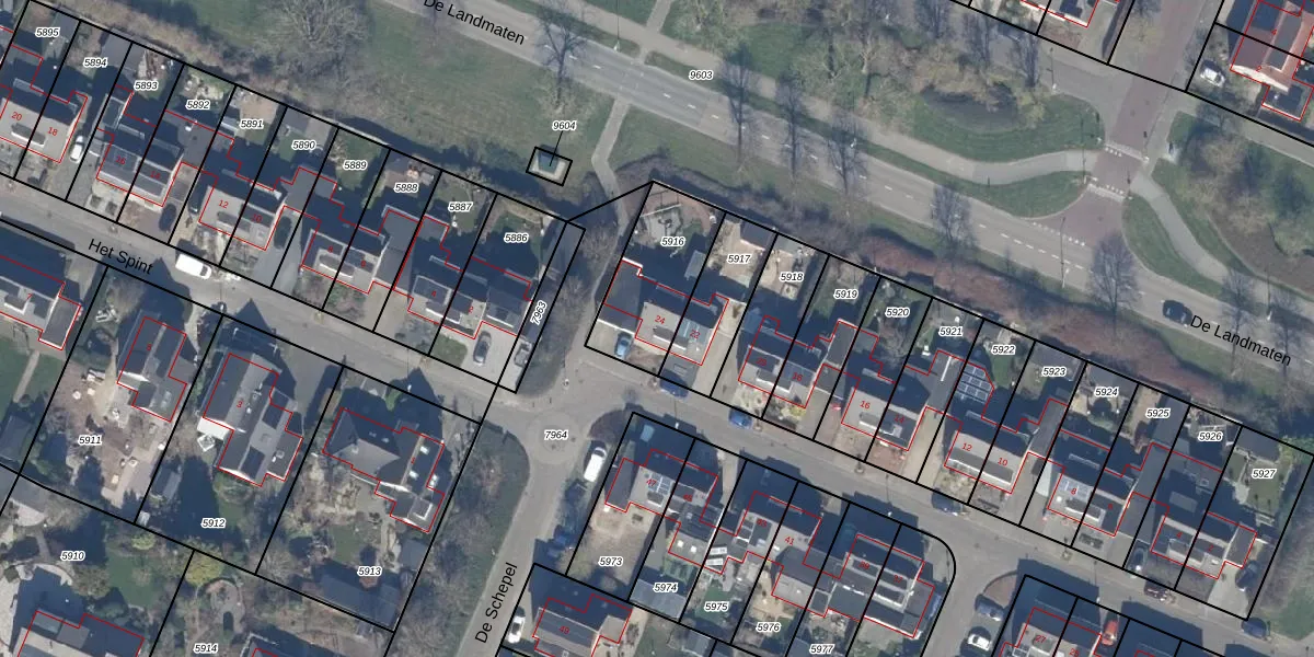 Het perceel waarop De Schepel 24 staat heeft een oppervlakte van 326 m². Dit is een groot perceel. De perceeloppervlakte wordt geregistreerd door het Kadaster. Gedetailleerde informatie over de maten van dit perceel kunt u vinden in het rapport Kadastrale kaart met maatvoering van De Schepel 24.