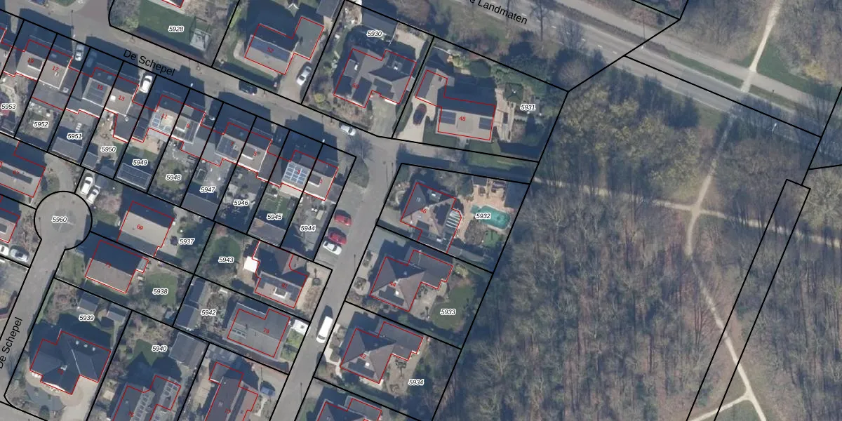 Het perceel waarop De Schepel 46 staat heeft een oppervlakte van 584 m². Dit is een groot perceel. De perceeloppervlakte wordt geregistreerd door het Kadaster. Gedetailleerde informatie over de maten van dit perceel kunt u vinden in het rapport Kadastrale kaart met maatvoering van De Schepel 46.