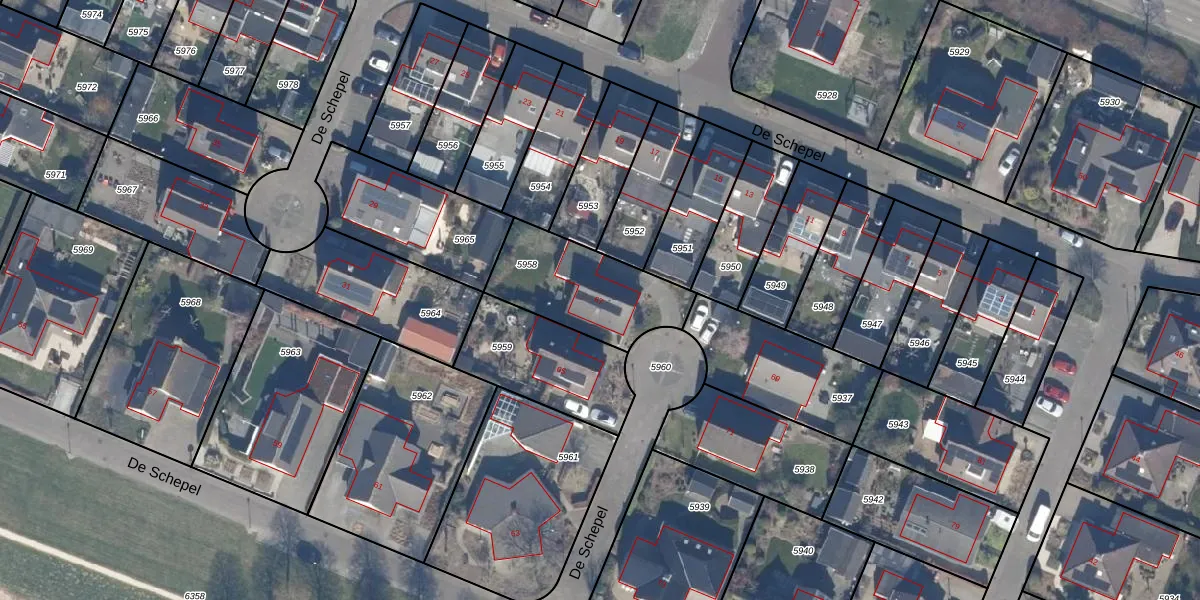 Het perceel waarop De Schepel 67 staat heeft een oppervlakte van 410 m². Dit is een groot perceel. De perceeloppervlakte wordt geregistreerd door het Kadaster. Gedetailleerde informatie over de maten van dit perceel kunt u vinden in het rapport Kadastrale kaart met maatvoering van De Schepel 67.