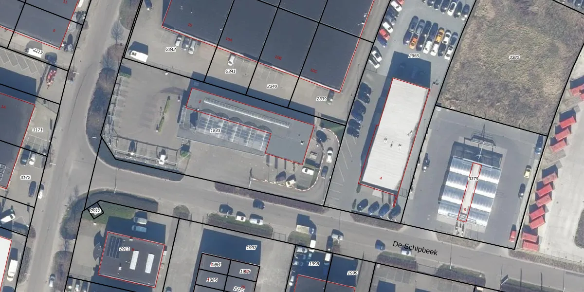 Het perceel waarop De Schipbeek 2 staat heeft een oppervlakte van 2502 m². Dit is een zeer groot perceel. De perceeloppervlakte wordt geregistreerd door het Kadaster. Gedetailleerde informatie over de maten van dit perceel kunt u vinden in het rapport Kadastrale kaart met maatvoering van De Schipbeek 2.
