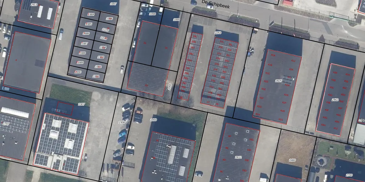 Het perceel waarop De Schipbeek 39-A staat heeft een oppervlakte van 1785 m². Dit is een zeer groot perceel. De perceeloppervlakte wordt geregistreerd door het Kadaster. Gedetailleerde informatie over de maten van dit perceel kunt u vinden in het rapport Kadastrale kaart met maatvoering van De Schipbeek 39-A.
