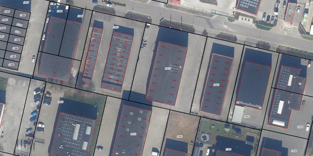 Het perceel waarop De Schipbeek 41-F staat heeft een oppervlakte van 2044 m². Dit is een zeer groot perceel. De perceeloppervlakte wordt geregistreerd door het Kadaster. Gedetailleerde informatie over de maten van dit perceel kunt u vinden in het rapport Kadastrale kaart met maatvoering van De Schipbeek 41-F.