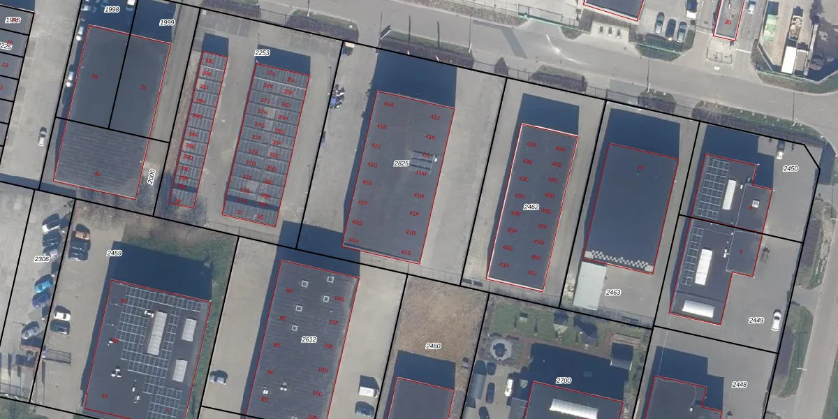 Het adres is gelegen op perceel 2825 in de sectie K en de kadastrale gemeente Dronten. De kadastrale aanduiding is aldus DTN01-K-2825. De gemiddelde perceelgrootte in Dronten is 1,8 ha. Dit perceel is kleiner: de perceeloppervlakte bedraagt 2044 m². Het grootste perceel in de kadastrale gemeente is 25,03 km². Het kleinste perceel heeft een oppervlakte van 0 m². Op het perceel zijn 16 adressen aanwezig. In de Basisregistratie Kadaster (BRK) werden de grenzen van het perceel geregistreerd op 24-10-2018.