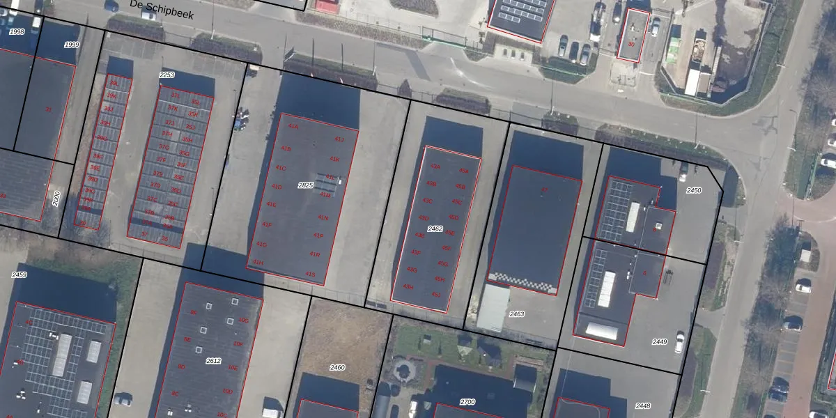 De Schipbeek 43-E is gelegen op kadastraal perceel DTN01K2462. Deze kadastrale aanduiding is uniek en wordt gebruikt door het Kadaster om eigendomsrechten en andere zakelijke rechten vast te leggen. Het perceel maakt onderdeel uit van de kadastrale gemeente Dronten.