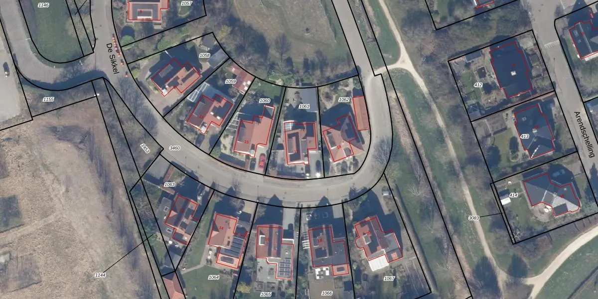 Het perceel waarop De Sikkel 17 staat heeft een oppervlakte van 468 m². Dit is een groot perceel. De perceeloppervlakte wordt geregistreerd door het Kadaster. Gedetailleerde informatie over de maten van dit perceel kunt u vinden in het rapport Kadastrale kaart met maatvoering van De Sikkel 17.
