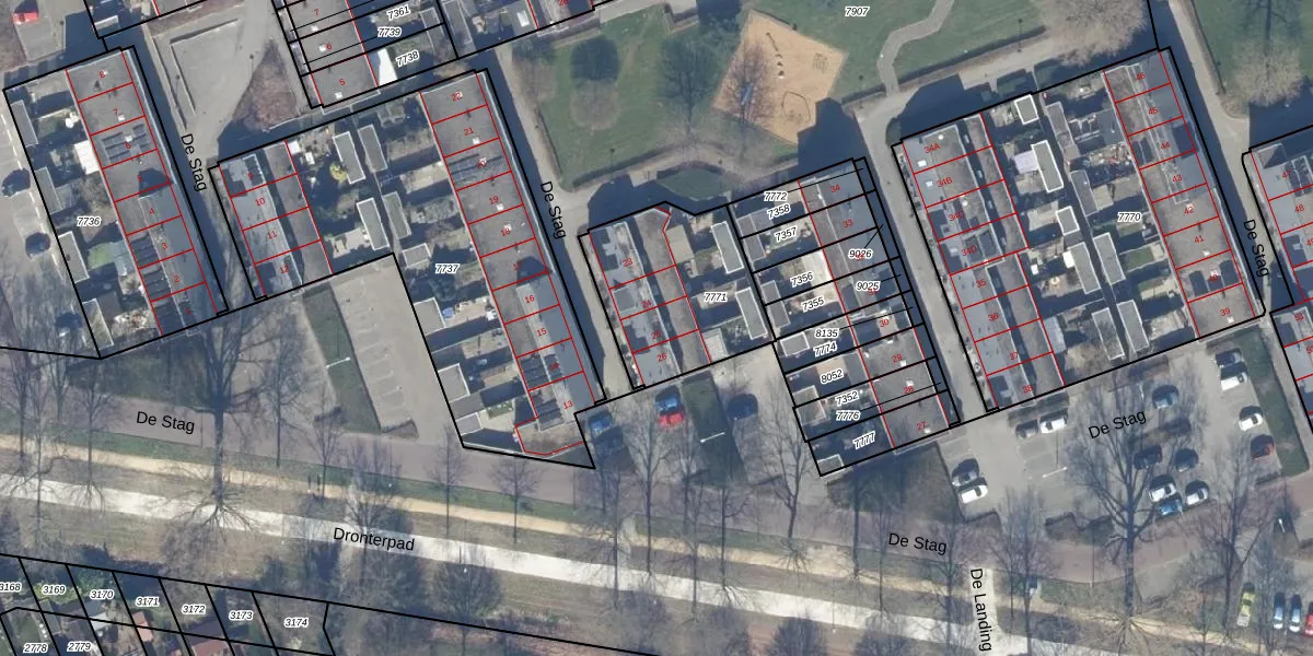 De Stag 25 is gelegen op kadastraal perceel DTN01A7771. Deze kadastrale aanduiding is uniek en wordt gebruikt door het Kadaster om eigendomsrechten en andere zakelijke rechten vast te leggen. Het perceel maakt onderdeel uit van de kadastrale gemeente Dronten.