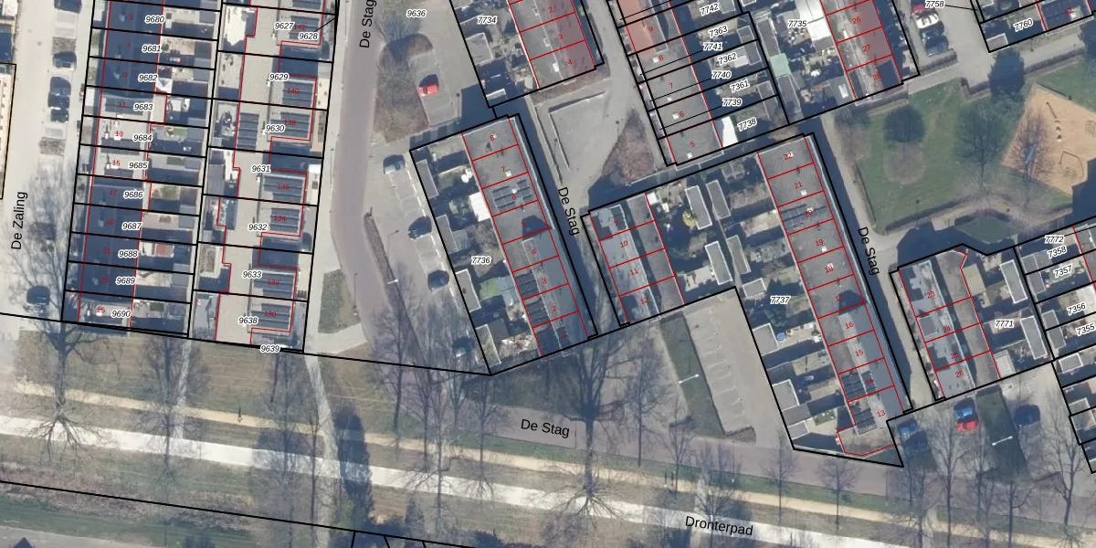 De Stag 3 is gelegen op kadastraal perceel DTN01A7736. Deze kadastrale aanduiding is uniek en wordt gebruikt door het Kadaster om eigendomsrechten en andere zakelijke rechten vast te leggen. Het perceel maakt onderdeel uit van de kadastrale gemeente Dronten.