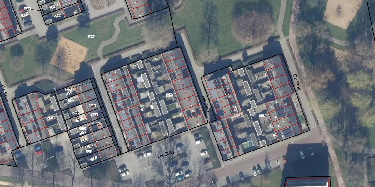 De Stag 42 is gelegen op kadastraal perceel DTN01A7770. Deze kadastrale aanduiding is uniek en wordt gebruikt door het Kadaster om eigendomsrechten en andere zakelijke rechten vast te leggen. Het perceel maakt onderdeel uit van de kadastrale gemeente Dronten.