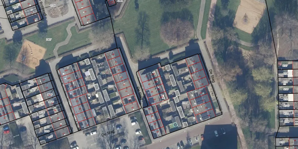 De Stag 47 is gelegen op kadastraal perceel DTN01A7769. Deze kadastrale aanduiding is uniek en wordt gebruikt door het Kadaster om eigendomsrechten en andere zakelijke rechten vast te leggen. Het perceel maakt onderdeel uit van de kadastrale gemeente Dronten.