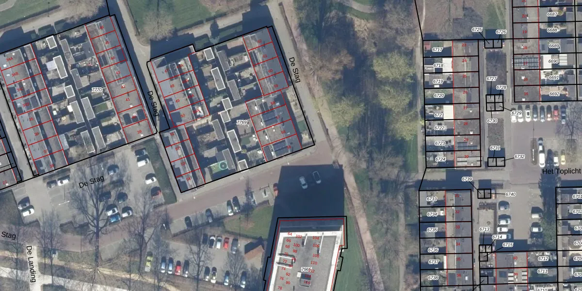 De Stag 55 is gelegen op kadastraal perceel DTN01A7769. Deze kadastrale aanduiding is uniek en wordt gebruikt door het Kadaster om eigendomsrechten en andere zakelijke rechten vast te leggen. Het perceel maakt onderdeel uit van de kadastrale gemeente Dronten.