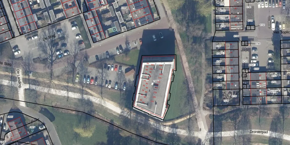 De Stag 70 is gelegen op kadastraal perceel DTN01A7965. Deze kadastrale aanduiding is uniek en wordt gebruikt door het Kadaster om eigendomsrechten en andere zakelijke rechten vast te leggen. Het perceel maakt onderdeel uit van de kadastrale gemeente Dronten.
