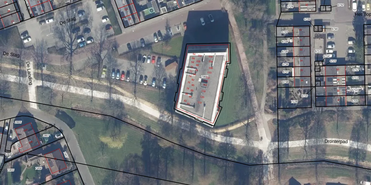 De Stag 80 is gelegen op kadastraal perceel DTN01A7965. Deze kadastrale aanduiding is uniek en wordt gebruikt door het Kadaster om eigendomsrechten en andere zakelijke rechten vast te leggen. Het perceel maakt onderdeel uit van de kadastrale gemeente Dronten.