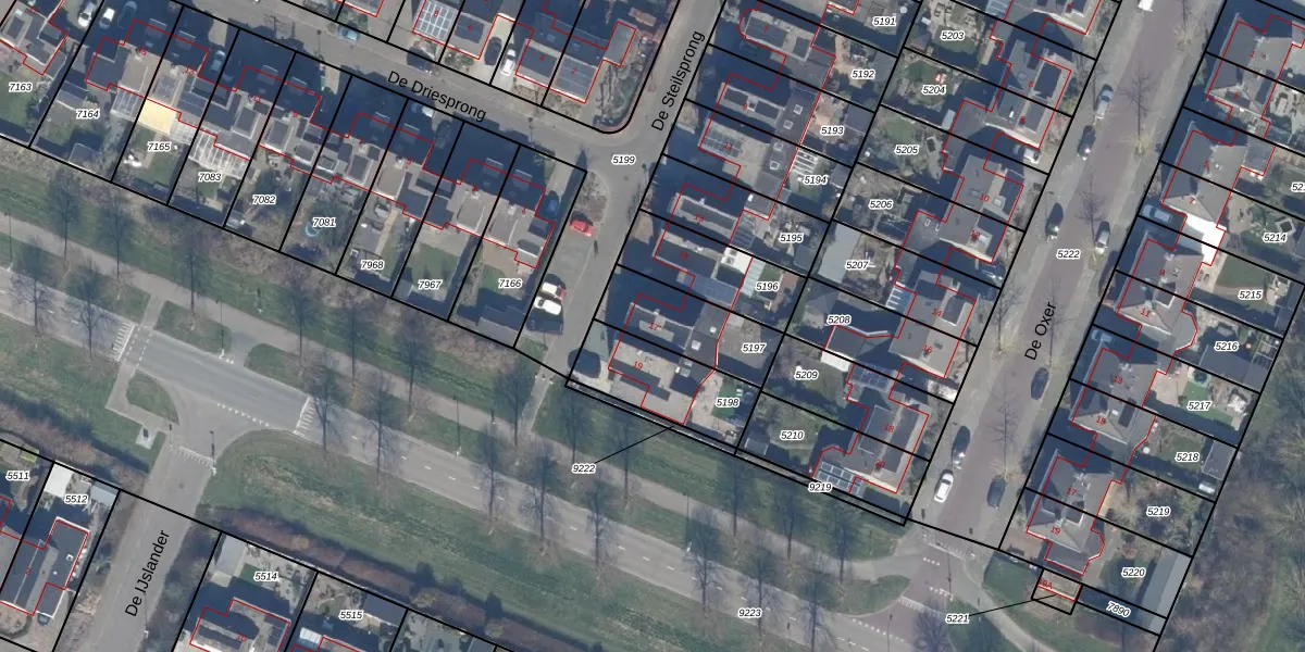 Het perceel waarop het adres ligt is DTN01-A-5197. De afkorting 'DTN01' staat voor kadastrale gemeente Dronten. Het perceel is 255 m² groot. Dat is kleiner dan de gemiddelde perceeloppervlakte in Dronten, dat op 1,8 ha ligt. Het kleinste perceel in de kadastrale gemeente is 0 m² groot. De grootste perceeloppervlakte is 25,03 km². Er zijn geen andere adressen aanwezig op het perceel. De laatste wijziging in het de Basisregistratie Kadaster (BRK) was op 20-08-1997.