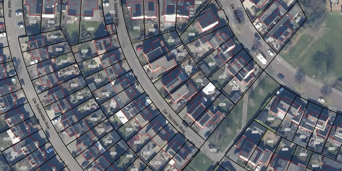 De Stichtse Roe 20 is gelegen op kadastraal perceel DTN01A5805. Deze kadastrale aanduiding is uniek en wordt gebruikt door het Kadaster om eigendomsrechten en andere zakelijke rechten vast te leggen. Het perceel maakt onderdeel uit van de kadastrale gemeente Dronten.