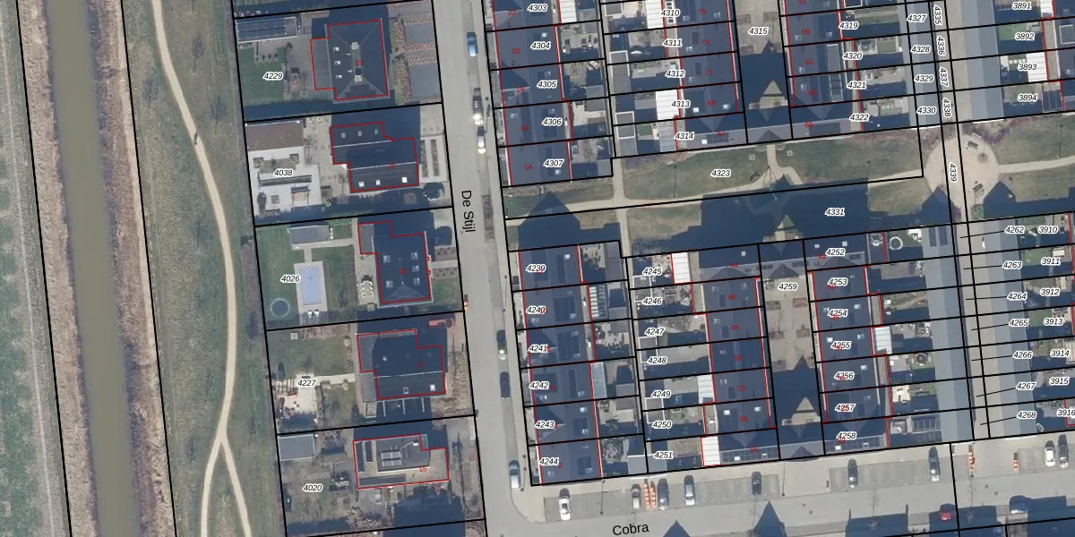 Het perceel waarop De Stijl 12 staat heeft een oppervlakte van 159 m². Dit is een middelgroot perceel. De perceeloppervlakte wordt geregistreerd door het Kadaster. Gedetailleerde informatie over de maten van dit perceel kunt u vinden in het rapport Kadastrale kaart met maatvoering van De Stijl 12.