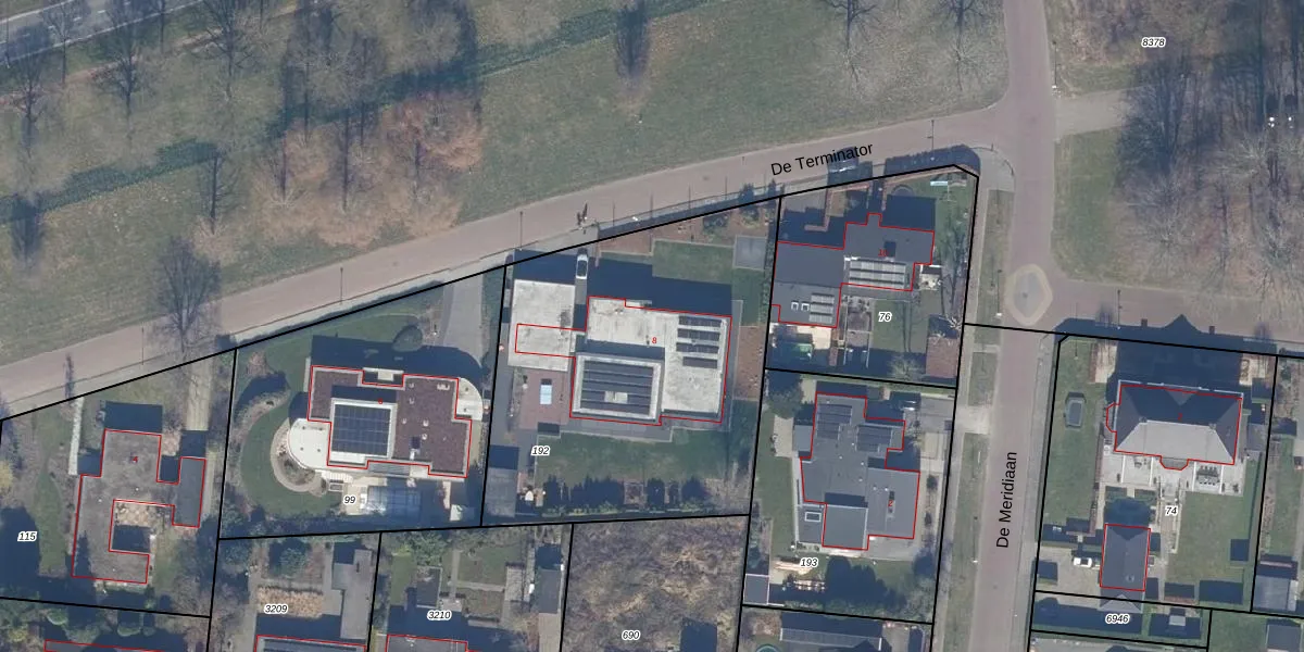 Het perceel waarop De Terminator 8 staat heeft een oppervlakte van 1816 m². Dit is een zeer groot perceel. De perceeloppervlakte wordt geregistreerd door het Kadaster. Gedetailleerde informatie over de maten van dit perceel kunt u vinden in het rapport Kadastrale kaart met maatvoering van De Terminator 8.