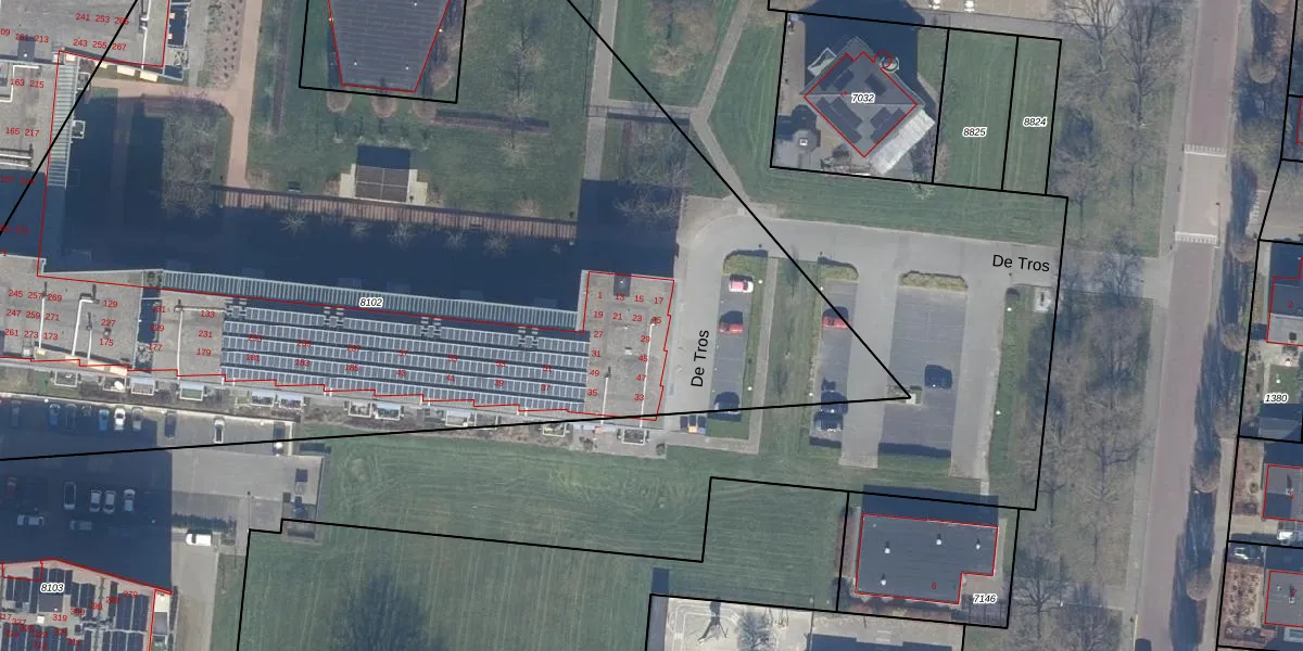 De Tros 21 is gelegen op kadastraal perceel DTN01A8102. Deze kadastrale aanduiding is uniek en wordt gebruikt door het Kadaster om eigendomsrechten en andere zakelijke rechten vast te leggen. Het perceel maakt onderdeel uit van de kadastrale gemeente Dronten.