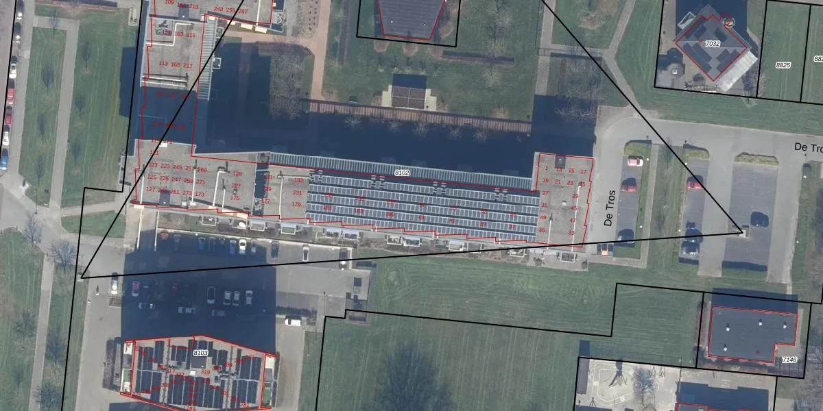 De Tros 57 is gelegen op kadastraal perceel DTN01A8102. Deze kadastrale aanduiding is uniek en wordt gebruikt door het Kadaster om eigendomsrechten en andere zakelijke rechten vast te leggen. Het perceel maakt onderdeel uit van de kadastrale gemeente Dronten.