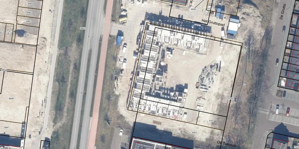 Het perceel waarop De Tureluur 44 staat heeft een oppervlakte van 2925 m². Dit is een zeer groot perceel. De perceeloppervlakte wordt geregistreerd door het Kadaster. Gedetailleerde informatie over de maten van dit perceel kunt u vinden in het rapport Kadastrale kaart met maatvoering van De Tureluur 44.