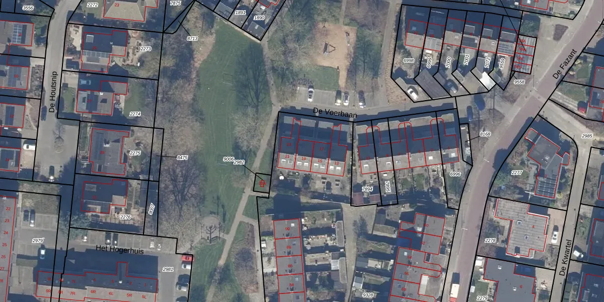 De Voerbaan 19 is gelegen op kadastraal perceel DTN01A9328. Deze kadastrale aanduiding is uniek en wordt gebruikt door het Kadaster om eigendomsrechten en andere zakelijke rechten vast te leggen. Het perceel maakt onderdeel uit van de kadastrale gemeente Dronten.