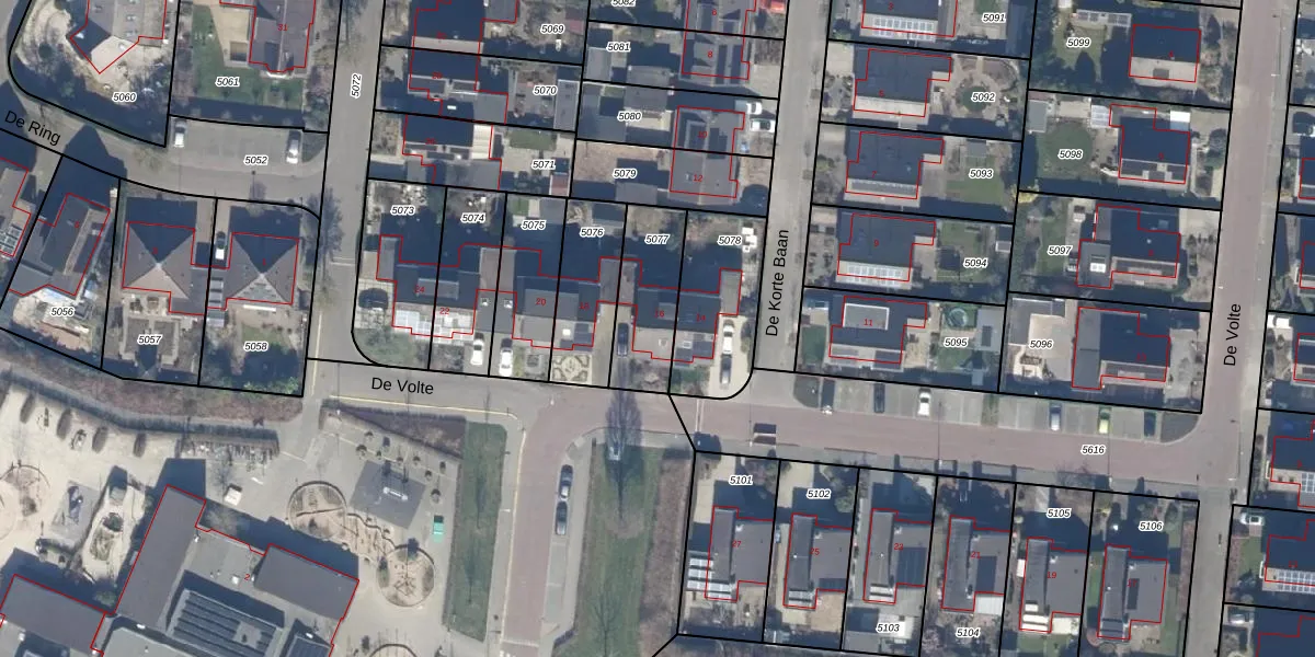 Het perceel waarop De Volte 16 staat heeft een oppervlakte van 259 m². Dit is een middelgroot perceel. De perceeloppervlakte wordt geregistreerd door het Kadaster. Gedetailleerde informatie over de maten van dit perceel kunt u vinden in het rapport Kadastrale kaart met maatvoering van De Volte 16.