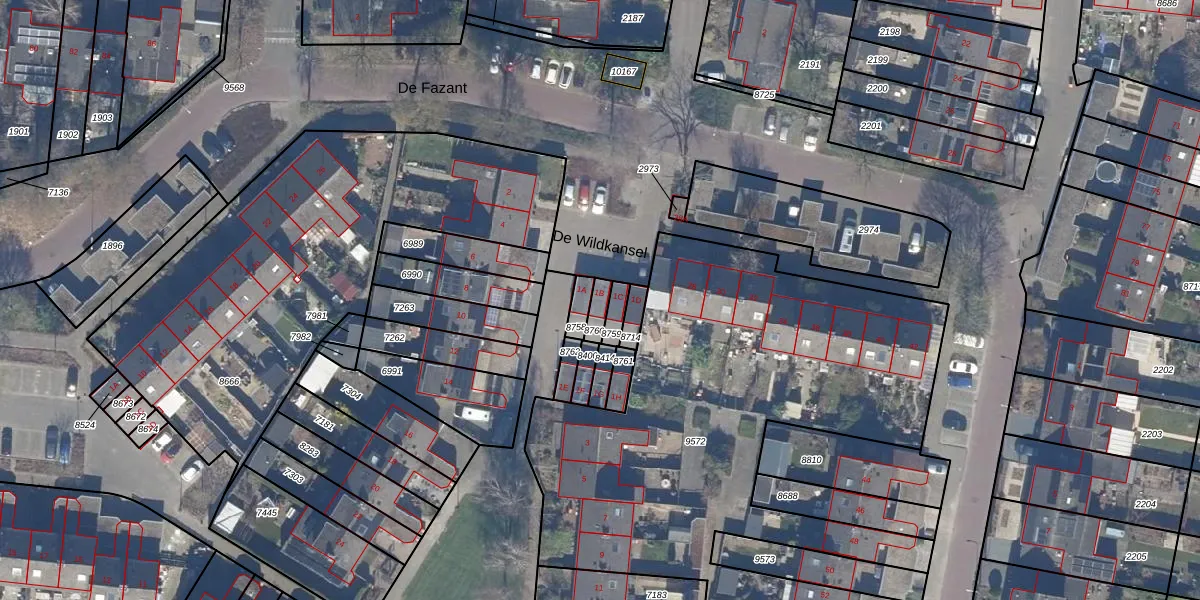 Gebruik de zoekbalk of klik op een perceel voor informatie over de adressen binnen dit perceel.