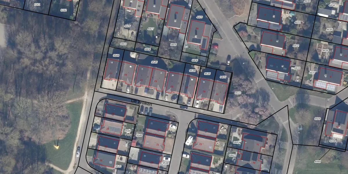 Het perceel waarop De Wolken 25 staat heeft een oppervlakte van 870 m². Dit is een groot perceel. De perceeloppervlakte wordt geregistreerd door het Kadaster. Gedetailleerde informatie over de maten van dit perceel kunt u vinden in het rapport Kadastrale kaart met maatvoering van De Wolken 25.