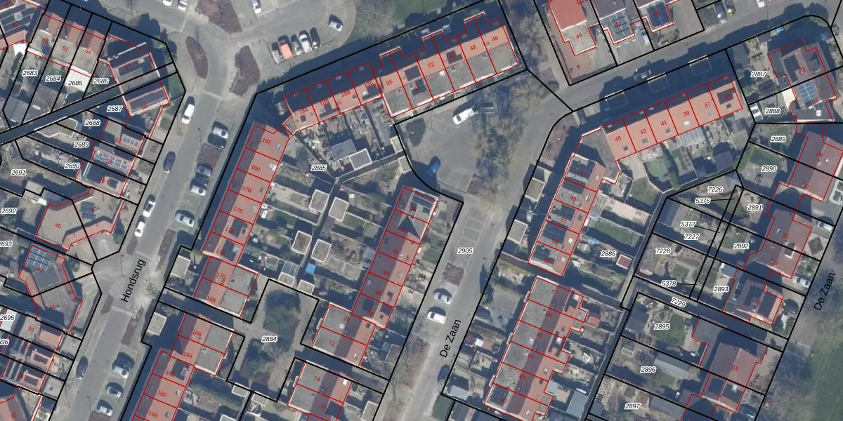 Het perceel waarop De Zaan 58 staat heeft een oppervlakte van 3653 m². Dit is een zeer groot perceel. De perceeloppervlakte wordt geregistreerd door het Kadaster. Gedetailleerde informatie over de maten van dit perceel kunt u vinden in het rapport Kadastrale kaart met maatvoering van De Zaan 58.