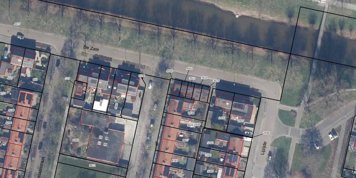 Het perceel waarop De Zate 34-A staat heeft een oppervlakte van 60 m². Dit is een klein perceel. De perceeloppervlakte wordt geregistreerd door het Kadaster. Gedetailleerde informatie over de maten van dit perceel kunt u vinden in het rapport Kadastrale kaart met maatvoering van De Zate 34-A.