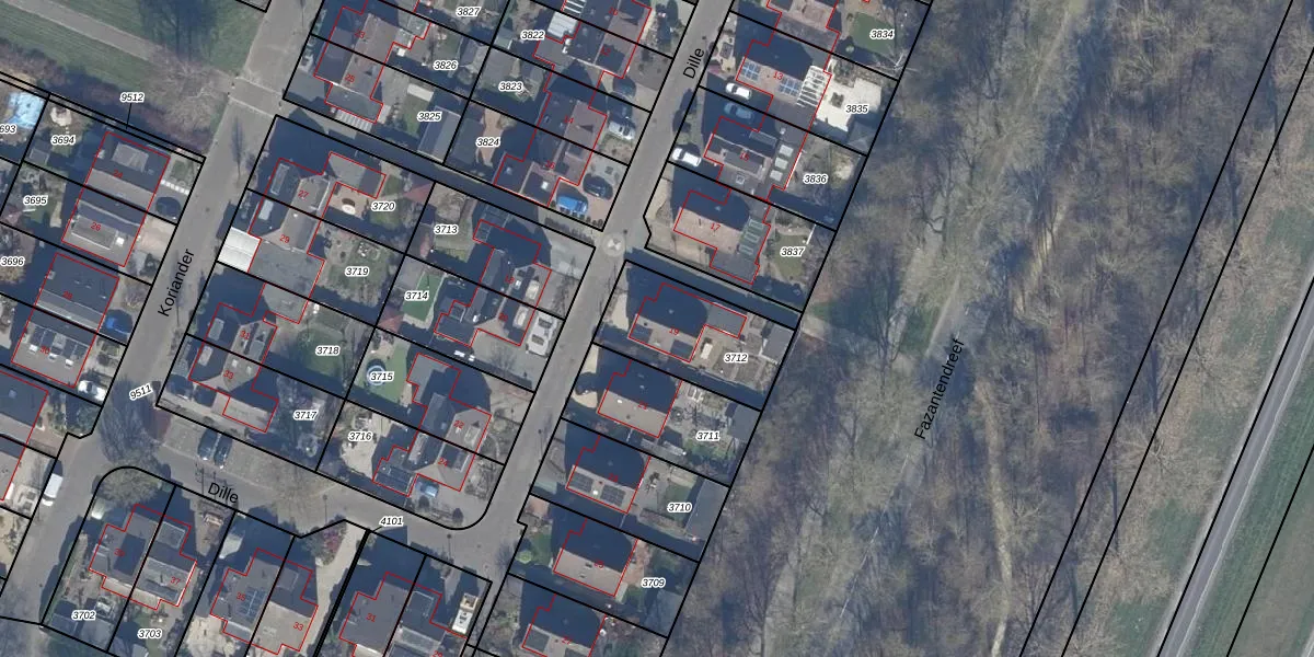 Het perceel waarop Dille 19 staat heeft een oppervlakte van 377 m². Dit is een groot perceel. De perceeloppervlakte wordt geregistreerd door het Kadaster. Gedetailleerde informatie over de maten van dit perceel kunt u vinden in het rapport Kadastrale kaart met maatvoering van Dille 19.
