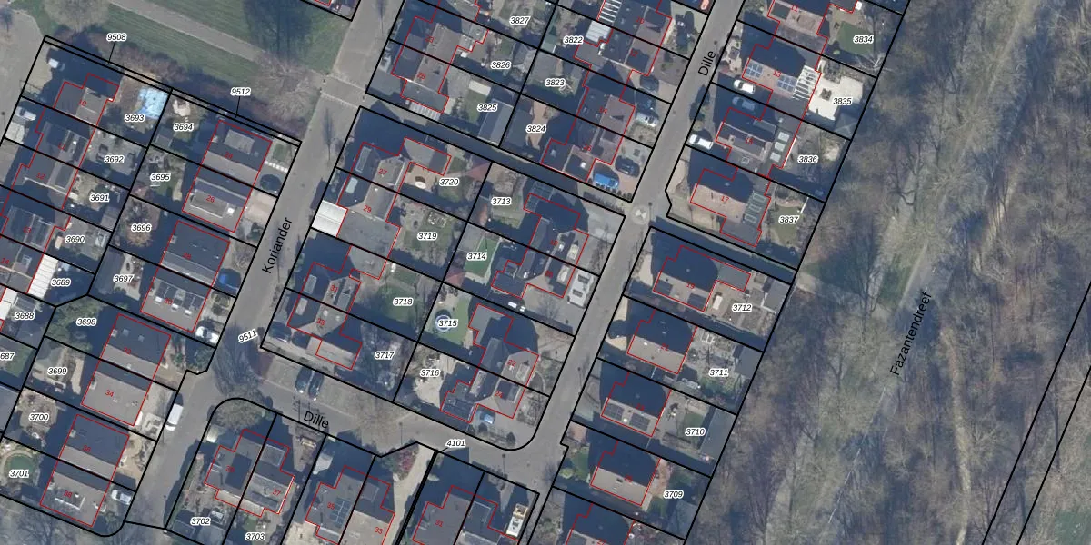 Het perceel waarop Dille 20 staat heeft een oppervlakte van 314 m². Dit is een groot perceel. De perceeloppervlakte wordt geregistreerd door het Kadaster. Gedetailleerde informatie over de maten van dit perceel kunt u vinden in het rapport Kadastrale kaart met maatvoering van Dille 20.