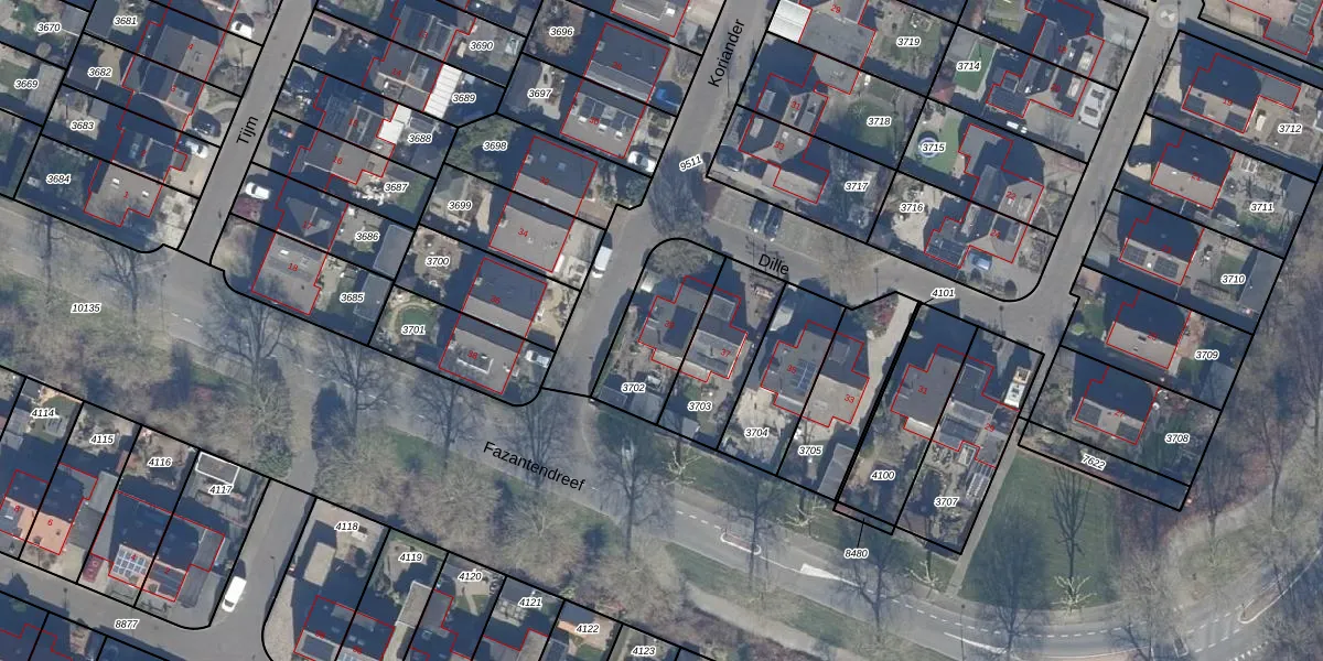 Het perceel waarop Dille 39 staat heeft een oppervlakte van 294 m². Dit is een middelgroot perceel. De perceeloppervlakte wordt geregistreerd door het Kadaster. Gedetailleerde informatie over de maten van dit perceel kunt u vinden in het rapport Kadastrale kaart met maatvoering van Dille 39.