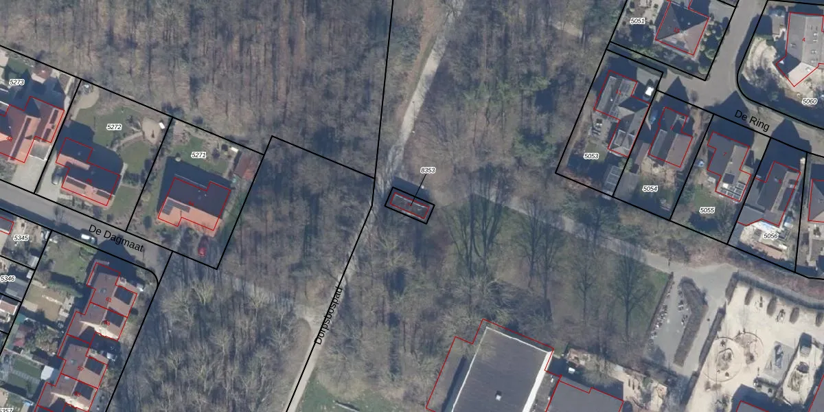 Het perceel waarop Dorpsbospad 1 staat heeft een oppervlakte van 55 m². Dit is een klein perceel. De perceeloppervlakte wordt geregistreerd door het Kadaster. Gedetailleerde informatie over de maten van dit perceel kunt u vinden in het rapport Kadastrale kaart met maatvoering van Dorpsbospad 1.