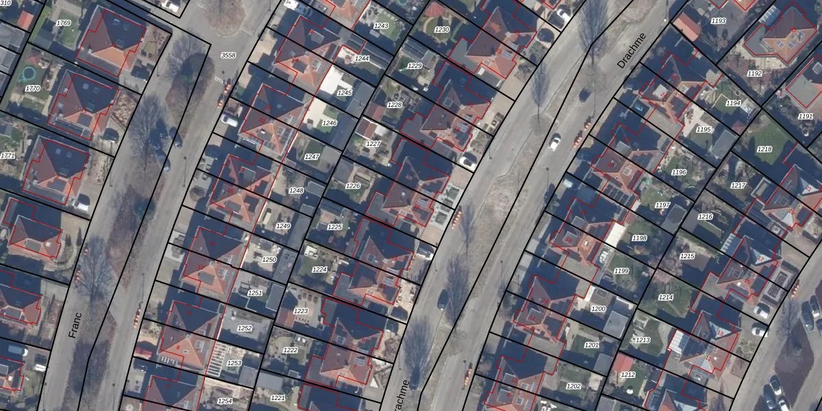 Het perceel waarop Drachme 15 staat heeft een oppervlakte van 327 m². Dit is een groot perceel. De perceeloppervlakte wordt geregistreerd door het Kadaster. Gedetailleerde informatie over de maten van dit perceel kunt u vinden in het rapport Kadastrale kaart met maatvoering van Drachme 15.
