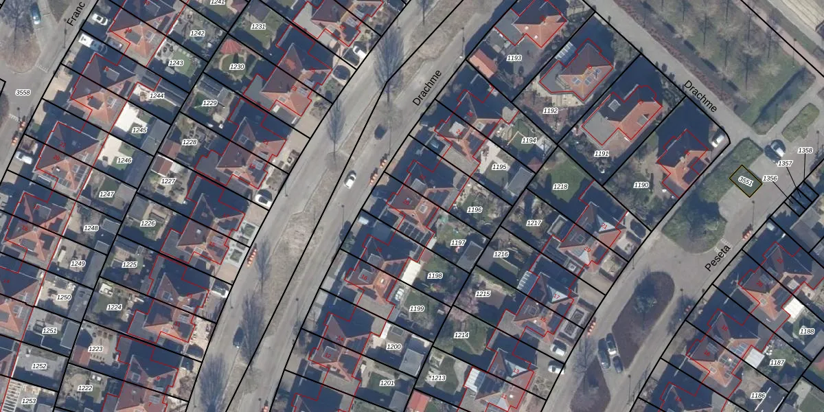 Het perceel waarop Drachme 20 staat heeft een oppervlakte van 313 m². Dit is een groot perceel. De perceeloppervlakte wordt geregistreerd door het Kadaster. Gedetailleerde informatie over de maten van dit perceel kunt u vinden in het rapport Kadastrale kaart met maatvoering van Drachme 20.