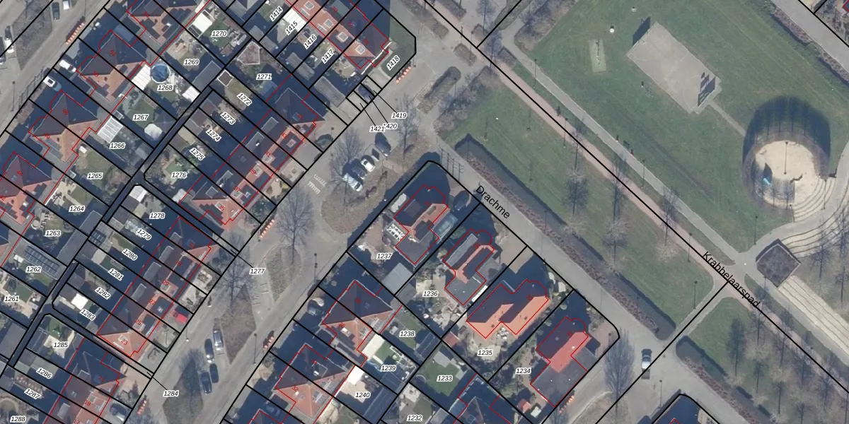 Het perceel waarop Drachme 37 staat heeft een oppervlakte van 469 m². Dit is een groot perceel. De perceeloppervlakte wordt geregistreerd door het Kadaster. Gedetailleerde informatie over de maten van dit perceel kunt u vinden in het rapport Kadastrale kaart met maatvoering van Drachme 37.