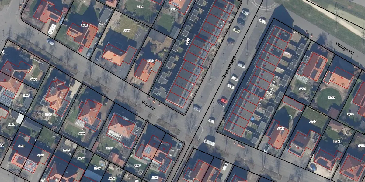 Het perceel waarop Druivenpers 3 staat heeft een oppervlakte van 1583 m². Dit is een zeer groot perceel. De perceeloppervlakte wordt geregistreerd door het Kadaster. Gedetailleerde informatie over de maten van dit perceel kunt u vinden in het rapport Kadastrale kaart met maatvoering van Druivenpers 3.