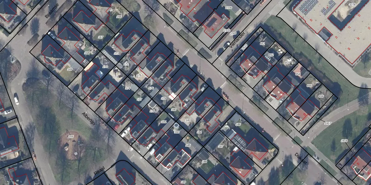 Gebruik de zoekbalk of klik op een perceel voor informatie over de adressen binnen dit perceel.