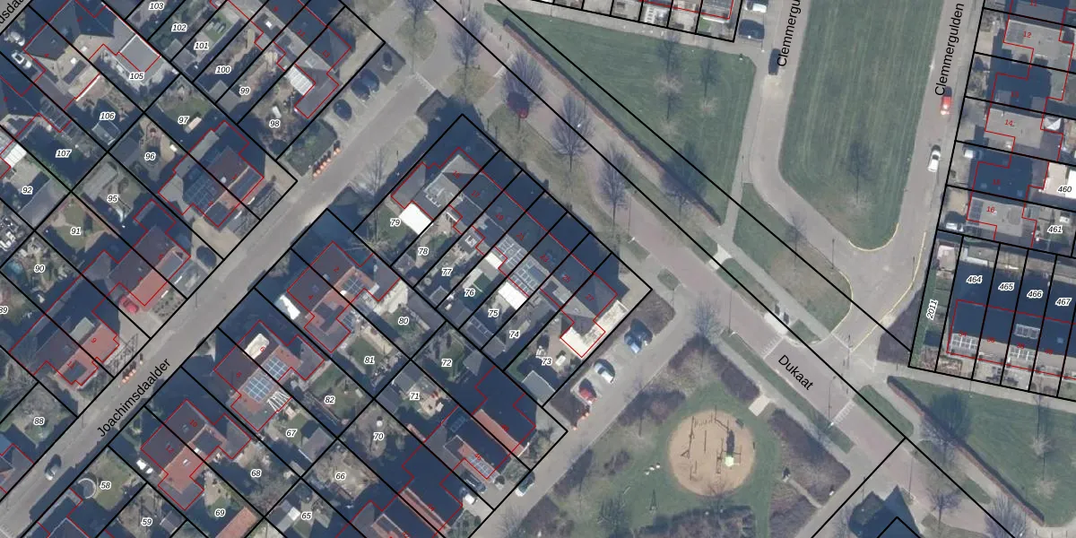Het perceel waarop Dukaat 23 staat heeft een oppervlakte van 171 m². Dit is een middelgroot perceel. De perceeloppervlakte wordt geregistreerd door het Kadaster. Gedetailleerde informatie over de maten van dit perceel kunt u vinden in het rapport Kadastrale kaart met maatvoering van Dukaat 23.