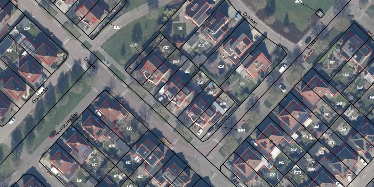 Het perceel waarop Dukaat 75 staat heeft een oppervlakte van 234 m². Dit is een middelgroot perceel. De perceeloppervlakte wordt geregistreerd door het Kadaster. Gedetailleerde informatie over de maten van dit perceel kunt u vinden in het rapport Kadastrale kaart met maatvoering van Dukaat 75.