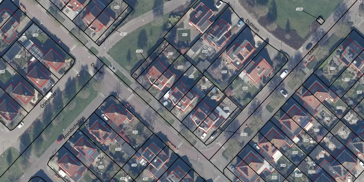 Het perceel waarop Dukaat 77 staat heeft een oppervlakte van 234 m². Dit is een middelgroot perceel. De perceeloppervlakte wordt geregistreerd door het Kadaster. Gedetailleerde informatie over de maten van dit perceel kunt u vinden in het rapport Kadastrale kaart met maatvoering van Dukaat 77.