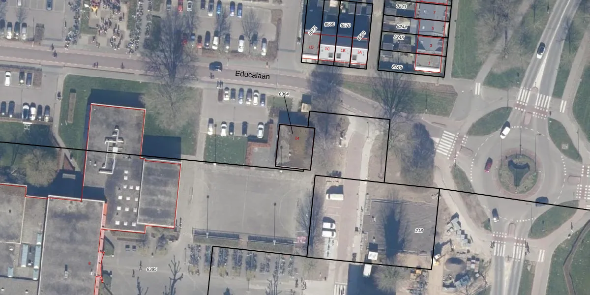 Educalaan 14 is gelegen op kadastraal perceel DTN01A6384. Deze kadastrale aanduiding is uniek en wordt gebruikt door het Kadaster om eigendomsrechten en andere zakelijke rechten vast te leggen. Het perceel maakt onderdeel uit van de kadastrale gemeente Dronten.