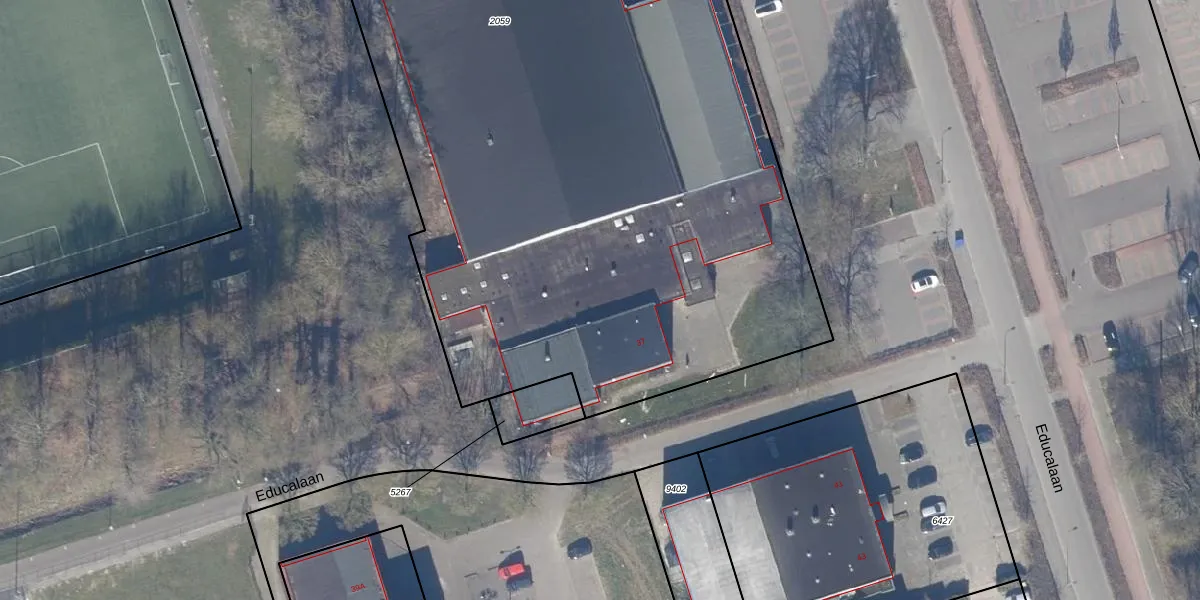 Het perceel waarop Educalaan 37 staat heeft een oppervlakte van 6209 m². Dit is een zeer groot perceel. De perceeloppervlakte wordt geregistreerd door het Kadaster. Gedetailleerde informatie over de maten van dit perceel kunt u vinden in het rapport Kadastrale kaart met maatvoering van Educalaan 37.