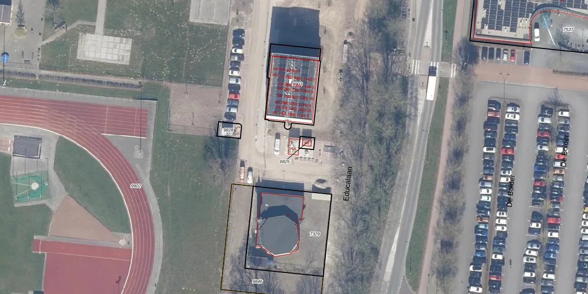 Het perceel waarop Educalaan 4-B staat heeft een oppervlakte van 8,0 ha. Dit is een zeer groot perceel. De perceeloppervlakte wordt geregistreerd door het Kadaster. Gedetailleerde informatie over de maten van dit perceel kunt u vinden in het rapport Kadastrale kaart met maatvoering van Educalaan 4-B.