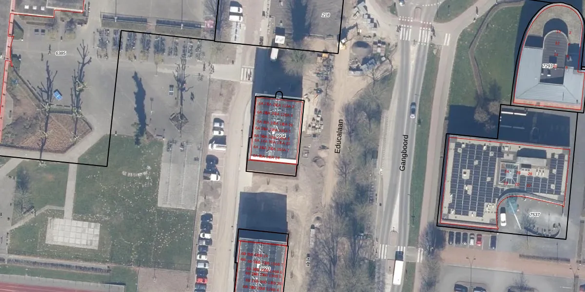 Het perceel waarop Educalaan 6-A-7 staat heeft een oppervlakte van 447 m². Dit is een groot perceel. De perceeloppervlakte wordt geregistreerd door het Kadaster. Gedetailleerde informatie over de maten van dit perceel kunt u vinden in het rapport Kadastrale kaart met maatvoering van Educalaan 6-A-7.