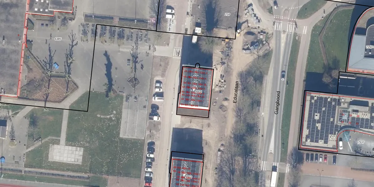Het perceel waarop Educalaan 6-A-17 staat heeft een oppervlakte van 447 m². Dit is een groot perceel. De perceeloppervlakte wordt geregistreerd door het Kadaster. Gedetailleerde informatie over de maten van dit perceel kunt u vinden in het rapport Kadastrale kaart met maatvoering van Educalaan 6-A-17.