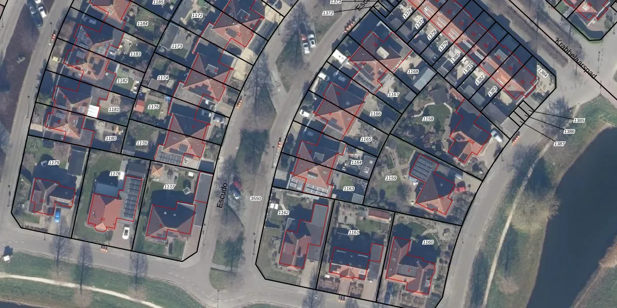 Het perceel waarop Escudo 6 staat heeft een oppervlakte van 288 m². Dit is een middelgroot perceel. De perceeloppervlakte wordt geregistreerd door het Kadaster. Gedetailleerde informatie over de maten van dit perceel kunt u vinden in het rapport Kadastrale kaart met maatvoering van Escudo 6.