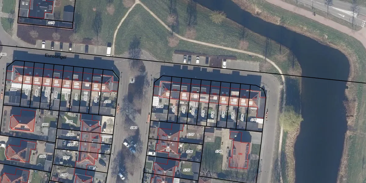 Het perceel waarop Eurosingel 162 staat heeft een oppervlakte van 135 m². Dit is een middelgroot perceel. De perceeloppervlakte wordt geregistreerd door het Kadaster. Gedetailleerde informatie over de maten van dit perceel kunt u vinden in het rapport Kadastrale kaart met maatvoering van Eurosingel 162.