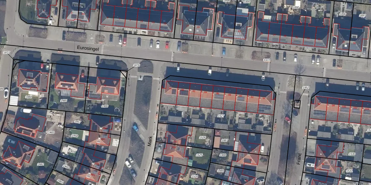 Het perceel waarop Eurosingel 80 staat heeft een oppervlakte van 1596 m². Dit is een zeer groot perceel. De perceeloppervlakte wordt geregistreerd door het Kadaster. Gedetailleerde informatie over de maten van dit perceel kunt u vinden in het rapport Kadastrale kaart met maatvoering van Eurosingel 80.